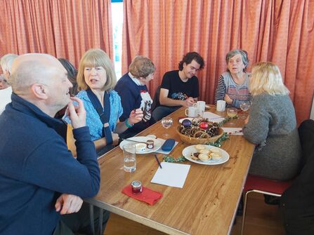 Bartonsham’s Artist in Residence also organised several events including a Midsummer Gathering on 21st June which featured a ring of five flags which were dyed using plants and materials from the Meadows and a meal celebrating food and produce related to floodplain meadows.
