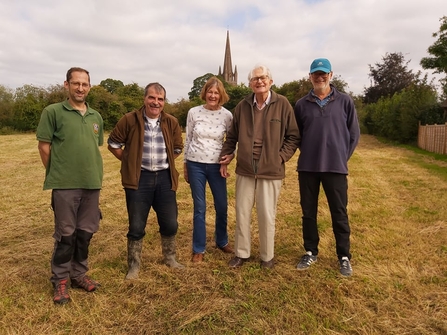 From left: Lewis Goldwater, Reserves Officer, Herefordshire Wildlife Trust; Charles Overton, Chair, HWT Weobley branch; Julie Peacock; Martin Peacock; Mike Williams, Voluntary Warden, Weobley Wildlife Meadows